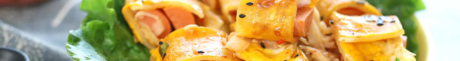 烤冷面,街邊攤主用泡好的一片冷面放在平底煎鍋上,用和鐵板魷魚一樣的鏟子一面涂上油后多次翻轉,其中一面可以加入雞蛋、蔥花、孜然、芝麻等然后刷上辣醬,用鏟子切成均勻一截一截小塊,裝入小塑料碗中,插上長竹簽既可以食用,可放醋和蒜汁等其他調料。 有冷面的韌勁,還有辣醬的鮮味,蔥、香菜的香氣,口感微酸,很好吃。