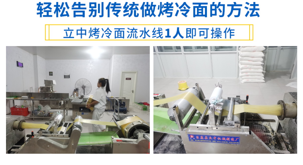 立中烤冷面流水線設(shè)備機(jī)器型號(hào)LZ-300-9設(shè)備替代了以往自動(dòng)烤冷面機(jī)器